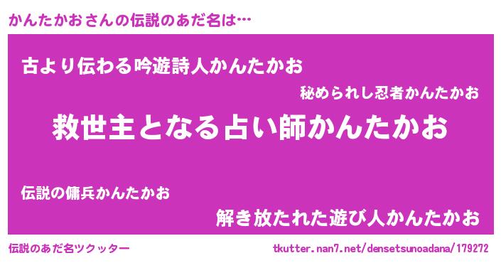 | 意味不明あだ名 | 『住所不定無職かんたかお(40歳)』 |