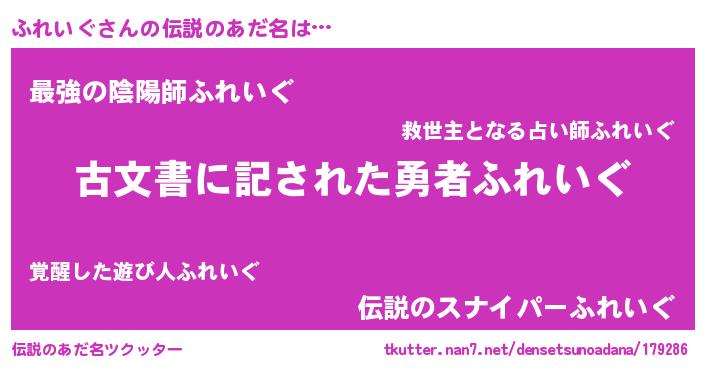 | ヒーロー風カッコイイあだ名 | 『ネオフレイグ』『ウルトラふれいぐマン』 |