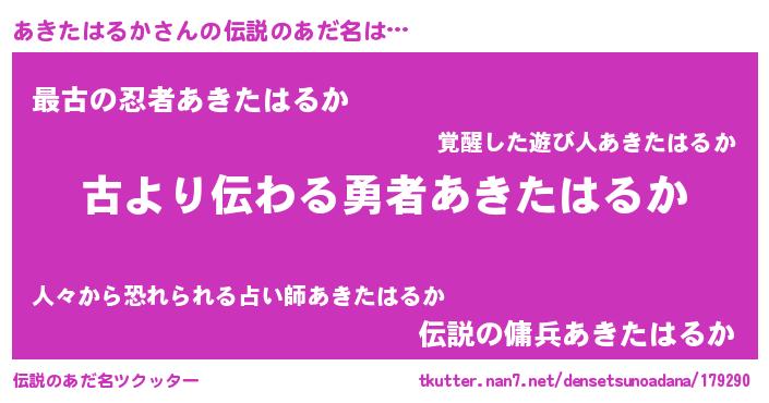 | 男性向けラノベタイトル風あだ名 | 『転生したらあきたはるかだった件』 |