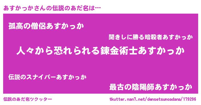 | 意味不明あだ名 | 『自称あすかっか』 |