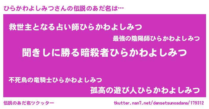 | 意味不明あだ名 | 『自称ひらかわよしみつ』 |
