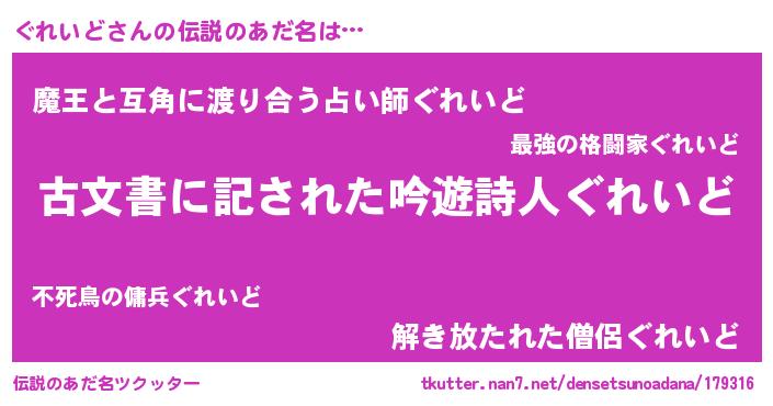 | 意味不明あだ名 | 『住所不定無職ぐれいど(3歳)』 |
