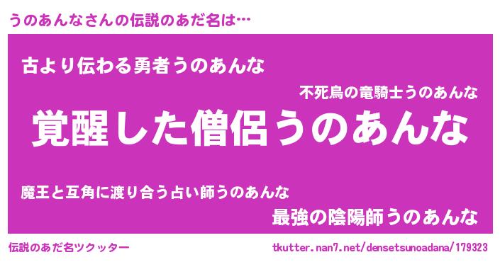 | 意味不明あだ名 | 『住所不定無職うのあんな(43歳)』 |