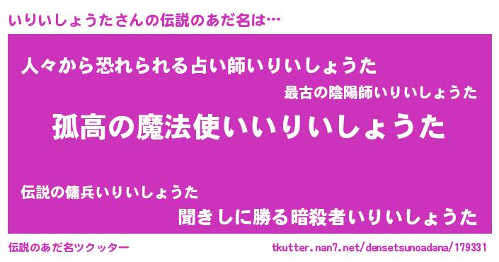 | 胡散臭い通販商品みたいなあだ名 | 『信頼と実績のサプリメント…その名も「いりいしょうた」』 |