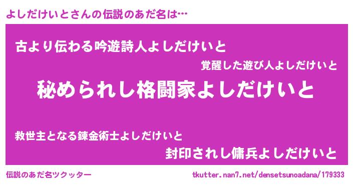 ファンタジー風あだ名 | 『エターナルヨシダケイトー』 |