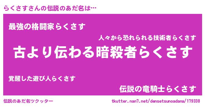 | 女子向けラノベタイトル風あだ名 | 『らくさすの契約王妃』『闇のらくさす』 |