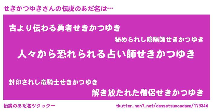 | ヘコむあだ名 | 『せきかつゆき(苦笑)』『せきっ子』 |