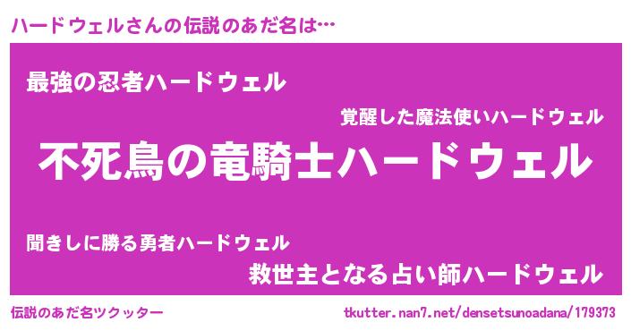 | 意味不明あだ名 | 『自称ハードウェル』 |