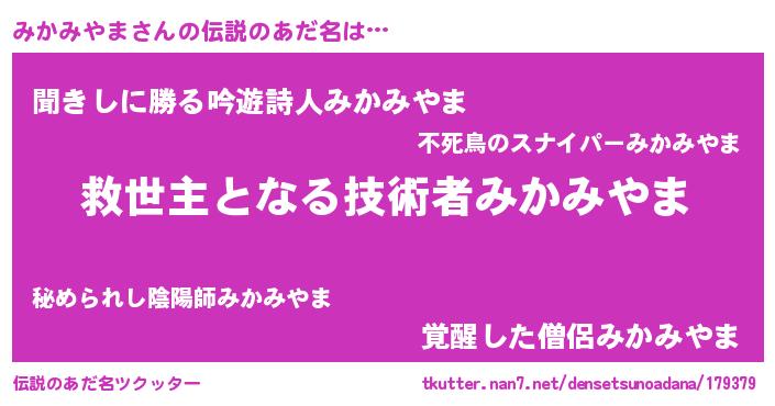 | ヘコむあだ名 | 『みかみやま(小並感)』『みかを』 |
