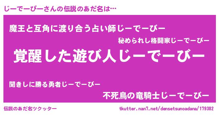 | 意味不明あだ名 | 『とにかく怪しいじーでーびー』 |