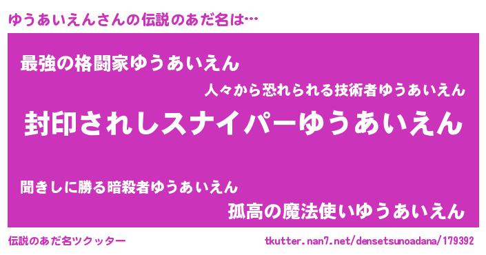 | ヒーロー風カッコイイあだ名 | 『スーパーユウアイエン』『天弓騎士ユウ』 |