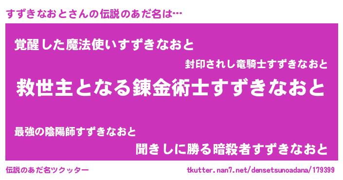 | 胡散臭い通販商品みたいなあだ名 | 『あなたにだけ特別に提供する世界で10本だけ現存している希少なブランデー…その名も「すずきなおと」』 |