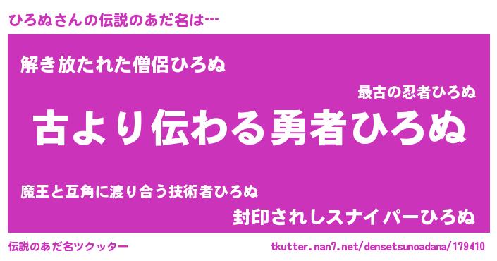 | ヒーロー風カッコイイあだ名 | 『ネオヒロヌ』『幻影騎士ヒロ』 |