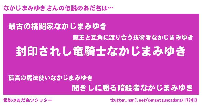 | 男性向けラノベタイトル風あだ名 | 『Re:なかじまみゆきから始める異世界生活』 |