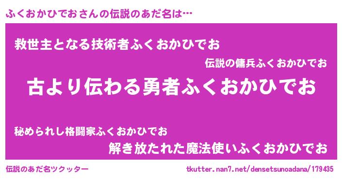 | ヒーロー風カッコイイあだ名 | 『ネオフクオカヒデオ』『仮面フクダー』 |