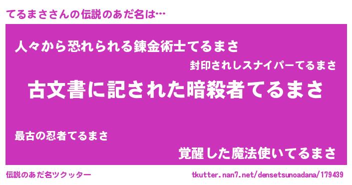 | 意味不明あだ名 | 『永久保存てるまさ』『自称てるまさ』 |