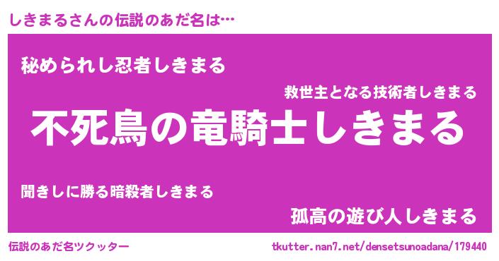 | ヒーロー風カッコイイあだ名 | 『スーパーシキマル』『魔戒騎士シキ』 |