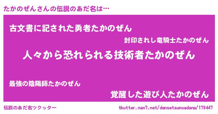 | ヘコむあだ名 | 『たかのぜん(笑)』『たかぷりん』 |