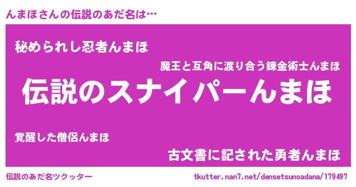 | 男性向けラノベタイトル風あだ名 | 『ンマホスレイヤー』 |