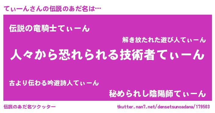 | ヒーロー風カッコイイあだ名 | 『友情の使者てぃーん』『仮面ティダー』 |