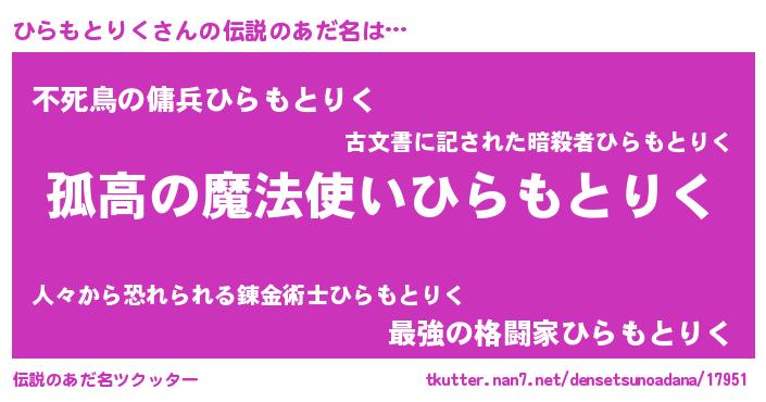 | 胡散臭い通販商品みたいなあだ名 | 『信頼と実績のサプリメント…その名も「ひらもとりく」』 |