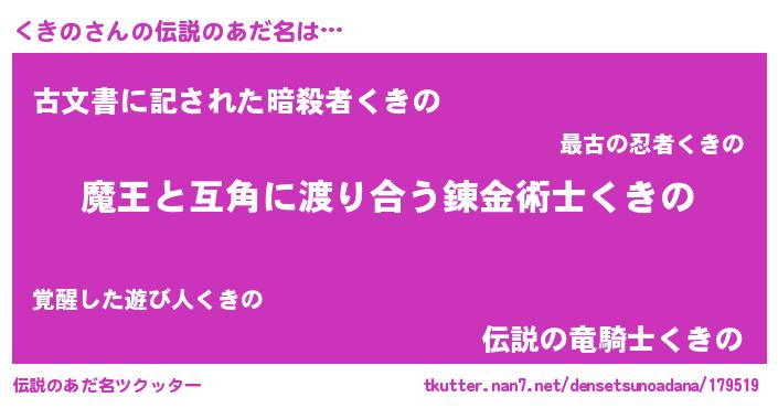 | ヒーロー風カッコイイあだ名 | 『愛の使者くきの』『ネオクキノ』 |