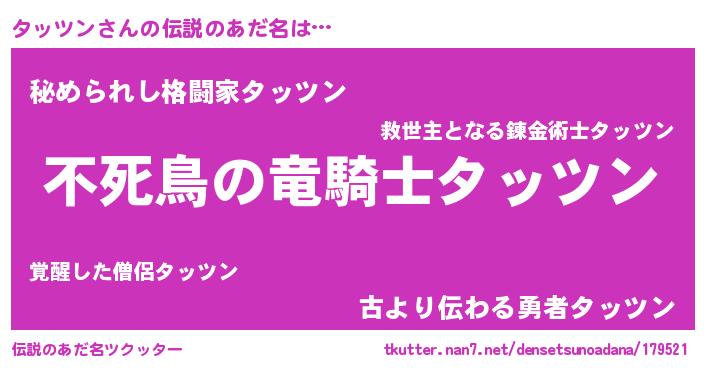 | 女子向けラノベタイトル風あだ名 | 『タッツン姫と円卓の騎士』 |