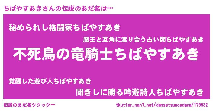 | 女子向けラノベタイトル風あだ名 | 『ちばやすあき姫と円卓の騎士』 |