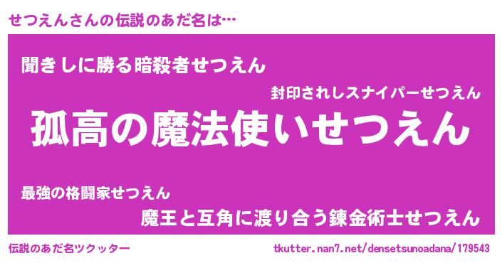 | ヒーロー風カッコイイあだ名 | 『黄金騎士セツ』『超時空戦士セツエン』 |