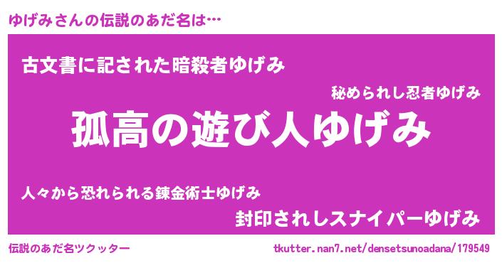 | ヒーロー風カッコイイあだ名 | 『暗黒騎士ユゲ』『ネオユゲミ』 |