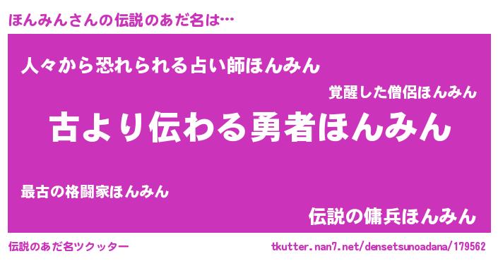 | 男性向けラノベタイトル風あだ名 | 『転生したらほんみんだった件』 |