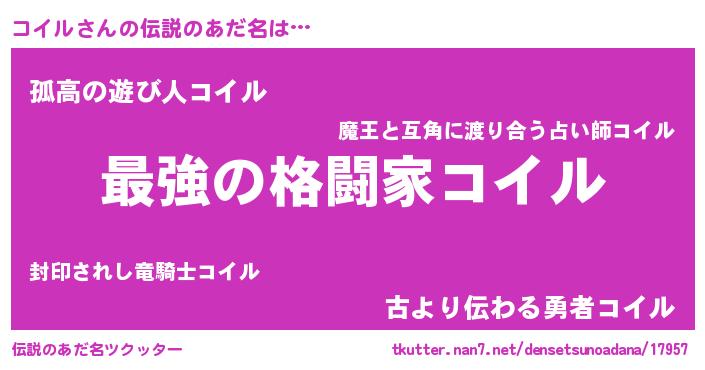 | 女子向けラノベタイトル風あだ名 | 『コイルの婚約者』 |