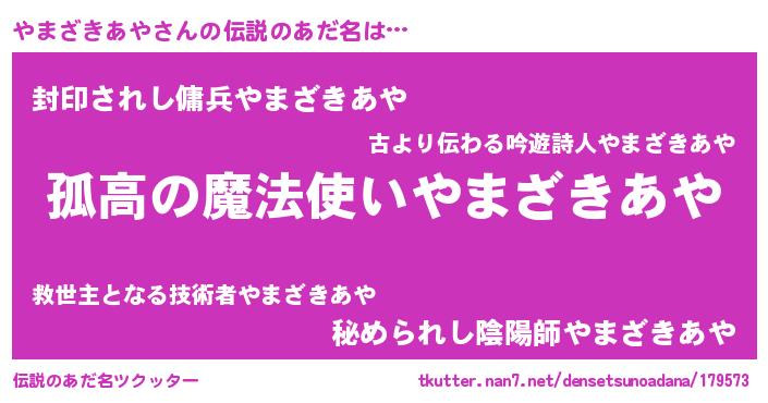 | 意味不明あだ名 | 『とにかく怪しいやまざきあや』 |