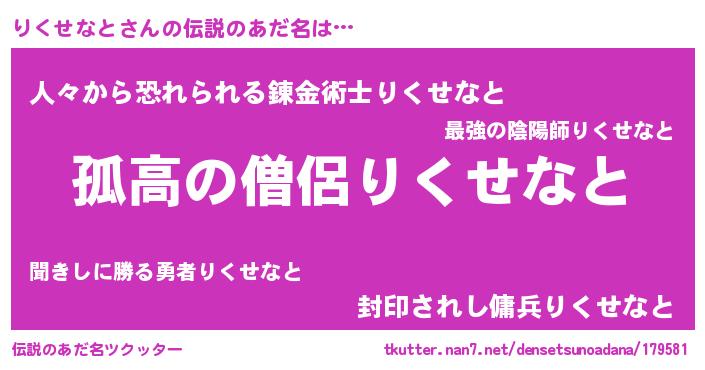 | 意味不明あだ名 | 『とにかく怪しいりくせなと』 |