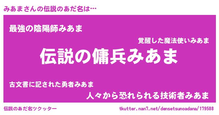 | ファンタジー風あだ名 | 『ミアフェル』『エターナルミアマー』 |