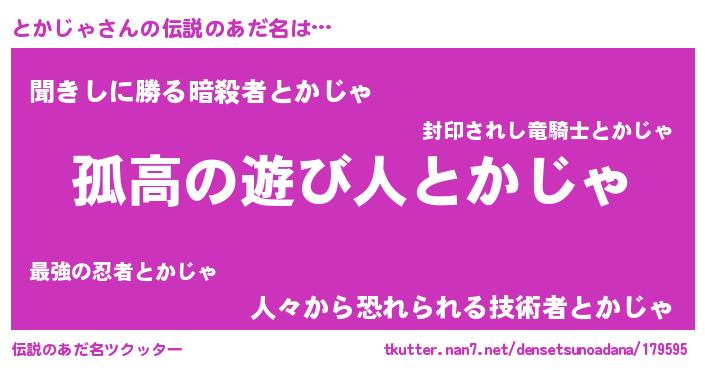 | ヒーロー風カッコイイあだ名 | 『超時空戦士トカジャ』『暗黒騎士トカ』 |
