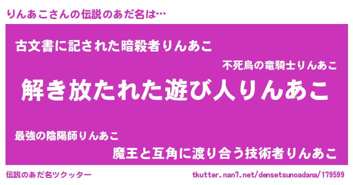 | 意味不明あだ名 | 『自称りんあこ』『永久保存りんあこ』 |