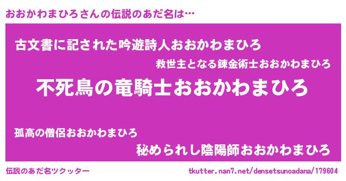 | 男性向けラノベタイトル風あだ名 | 『おおかわまひろの憂鬱』 |