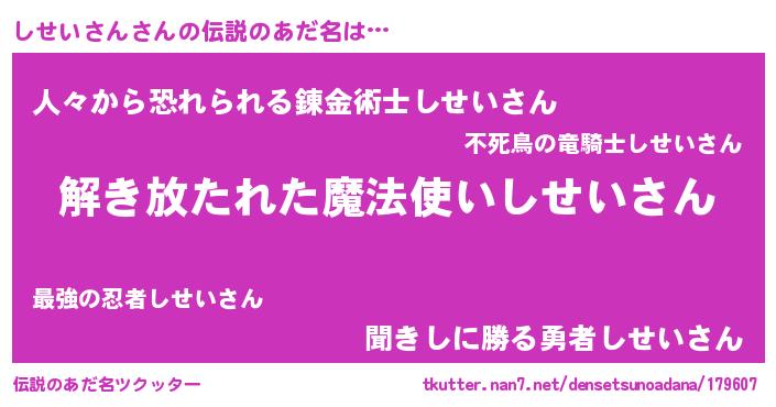 | 意味不明あだ名 | 『自称しせいさん』『永久保存しせいさん』 |