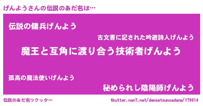 | 肩書あだ名 | 『げんよう中佐』『げんよう助教授』 |