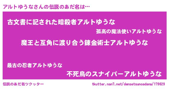| ヘコむあだ名 | 『アルトゆうな(震え声)』『アルっふぃ~』 |
