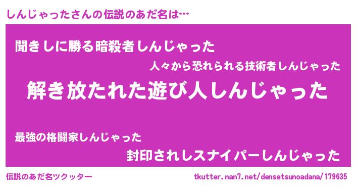 | ヒーロー風カッコイイあだ名 | 『仮面シンダー』『銀牙騎士シン』 |