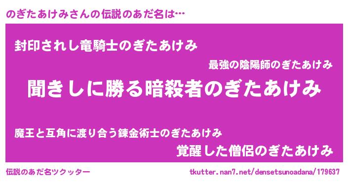 | ヒーロー風カッコイイあだ名 | 『ネオノギタアケミ』『幻影騎士ノギ』 |