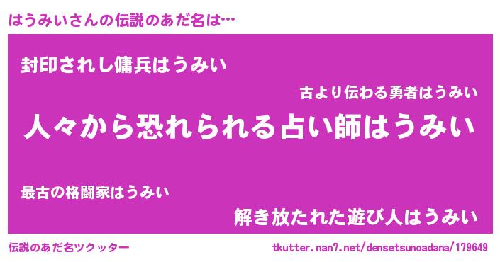 | ヒーロー風カッコイイあだ名 | 『正義の使者はうみい』『幻影騎士ハウ』 |