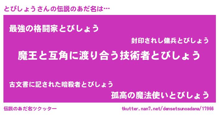 | ヒーロー風カッコイイあだ名 | 『仮面トビダー』『慈愛の使者とびしょう』 |