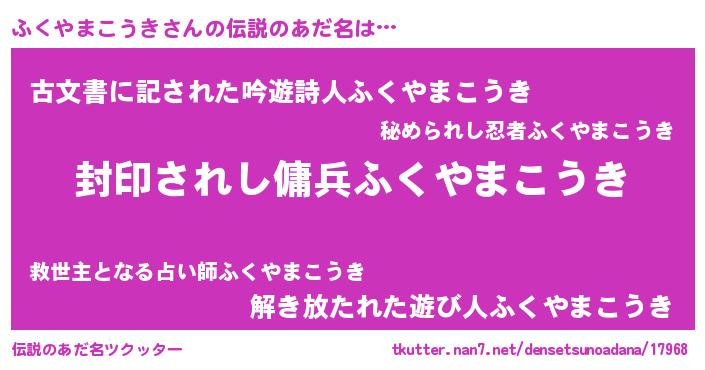| ヘコむあだ名 | 『ふくもー』『ふくやまこうき(笑)』 |