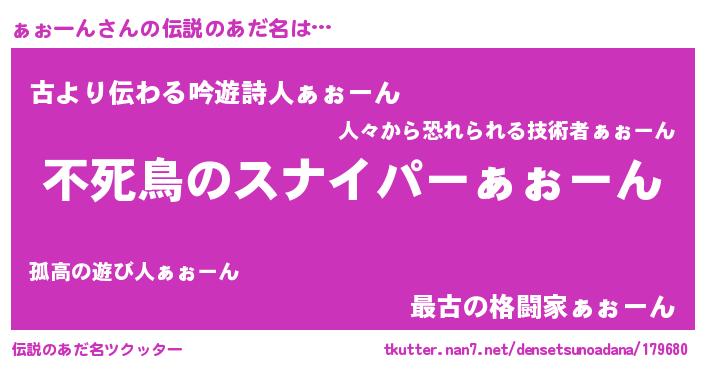 | ヒーロー風カッコイイあだ名 | 『スーパーァォーン』『ネオァォーン』 |