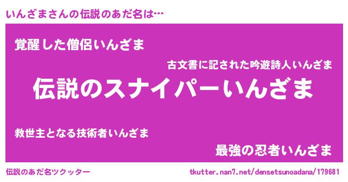 | 意味不明あだ名 | 『ペロリンいんざま』『自称いんざま』 |