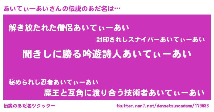 | 意味不明あだ名 | 『住所不定無職あいてぃーあい(7歳)』 |