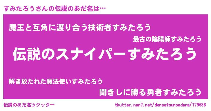 | 胡散臭い通販商品みたいなあだ名 | 『必ず成功する霊験あらたかなお札…その名も「すみたろう」』 |